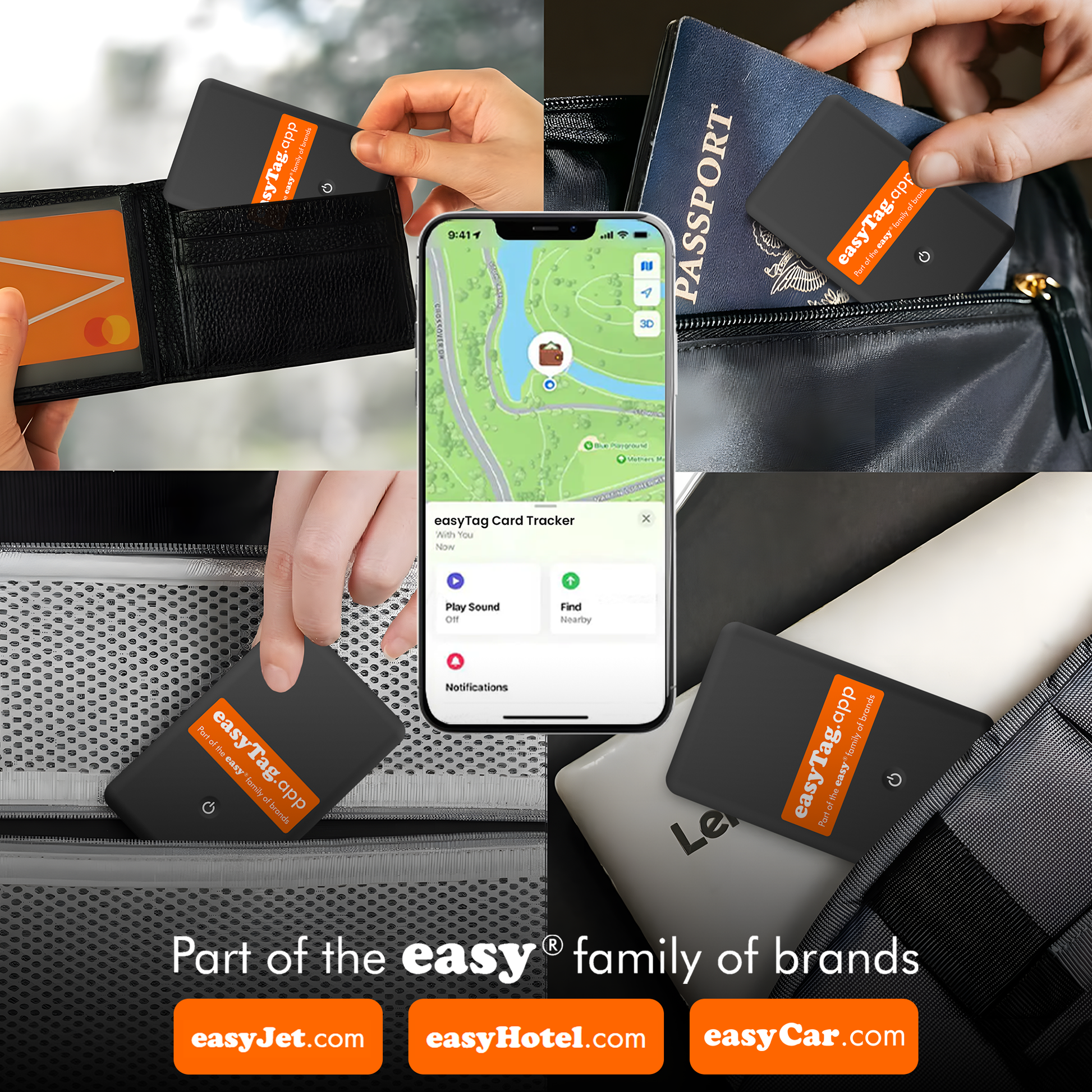 easyTag offers a slim, credit-card shape that slides into your wallet effortlessly. It provides full Apple tracking wallet compatibility and GPS-like accuracy using Apple’s Find My network, with no charging or subscription required.